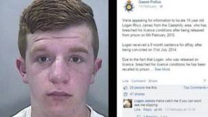 Logan James, aliyekuwa na umri wa miaka 19 alikuwa akitafutwa kwa kukiuka masharti ya kuachiliwa kwake jela. Kijana huyo kutoka Caerphilly alikuwa awali amefungwa kwa kuwajerushi na kuwashambulia watu na pia kuwa na kisu.